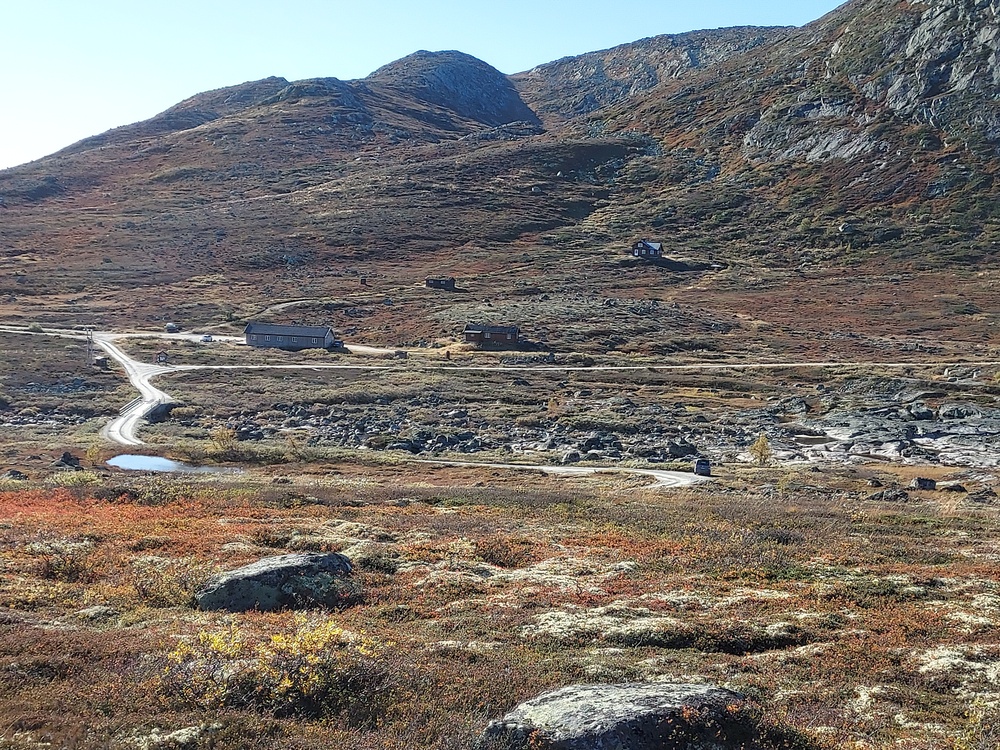 Jeg starter fra Parkeringen, følger veien oppover et stykke, vidre midt i bilde til jeg kommer til toppen av åsen. Det viste seg at de nye fjellstøvlene var litt romslig, lett å få gnagsår, 2 par nylon sokker løste problemet. Tiden jeg bruker opp åsen var ca 50 min med Ryggsekk på 10 kg, I morgen så kommer sovepose og mat i tillegg |