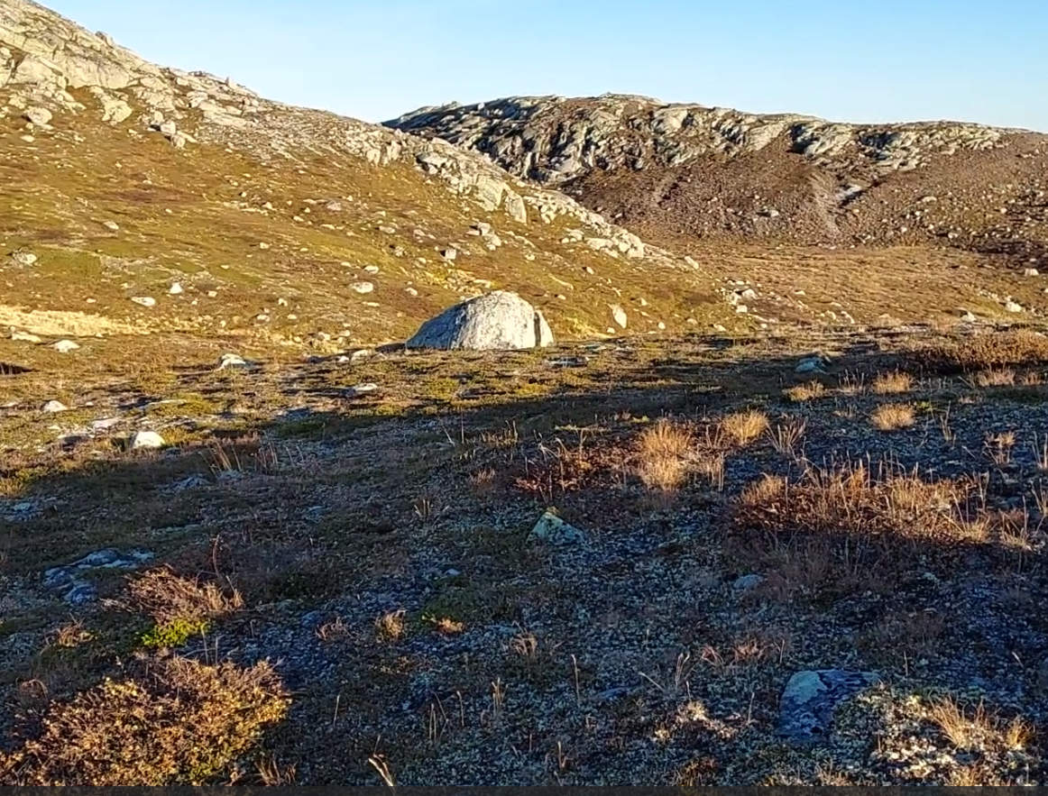 | KL 18:00; Sola begynner å kaste lange skygger, best å komme seg ned til bilen. I morgen begynner den virkelige turen, skal gå i mine fotspor fra 1973. |