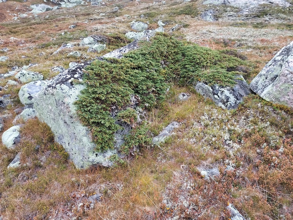 | Kl 11:18; Kom til denne steinrøysa av en fjelltopp, jeg klatret opp for å ta oversikts bilder. |