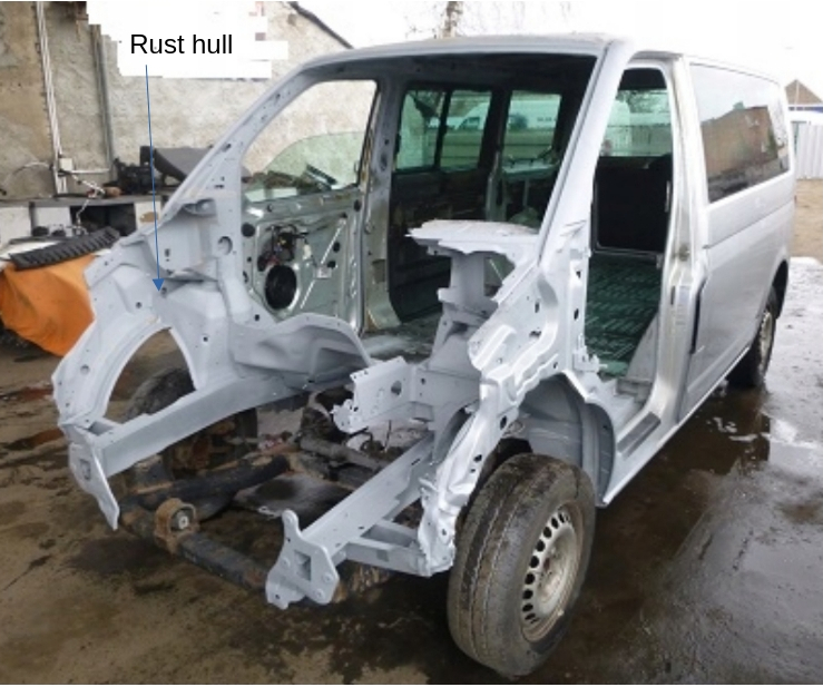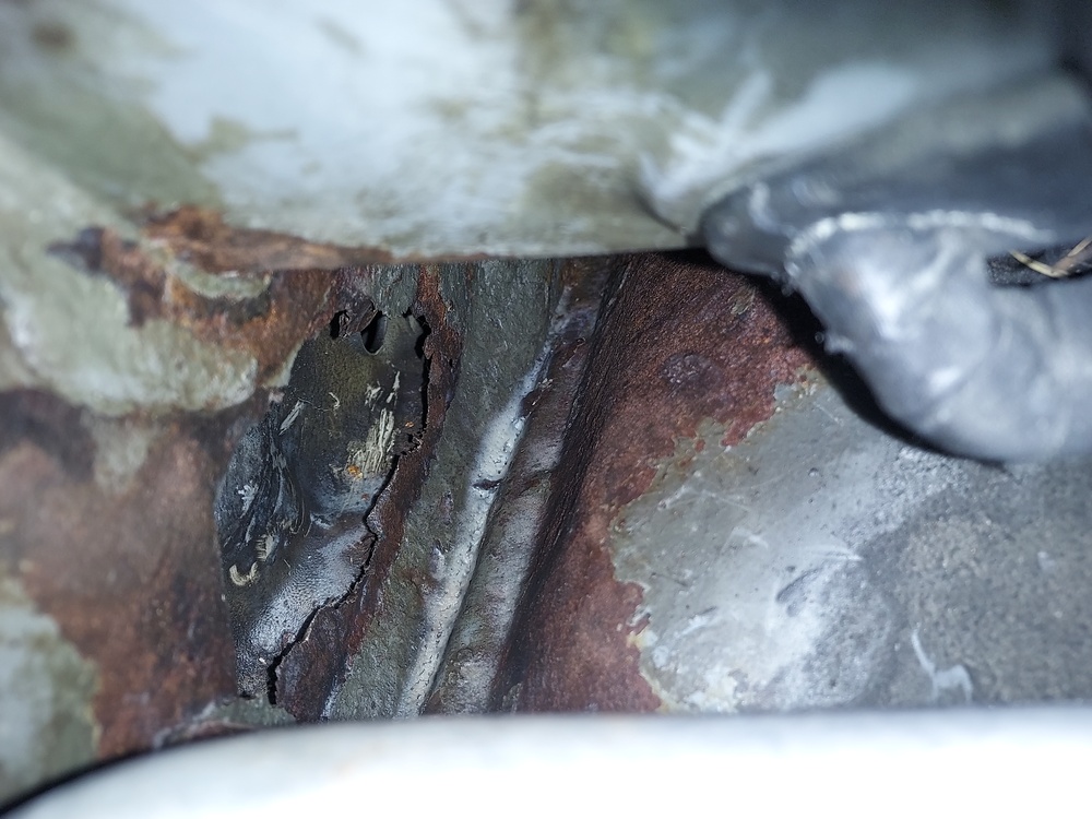 | Dette bilde har jeg funnet på Internett. Vann lekkasje har ført til rusthull på 5 til 6 cm, jeg har smurt på unversalfett for å hindre vidre rusting. |
